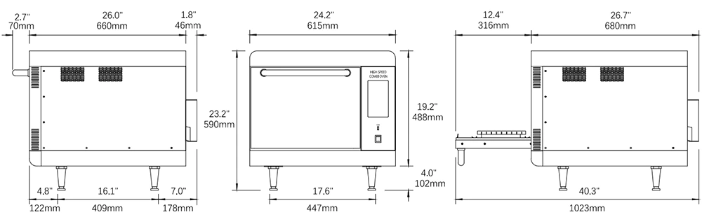 | Working principle | microwave + convection + impingement air + catalytic conversion + smart menu system + rapid preheating + rapid cooling |