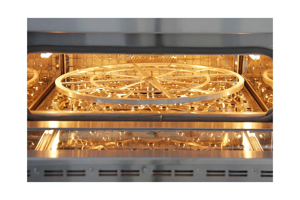 - Large cooking chamber (47 × 43 cm / 18.3 × 17 inches), suitable for 2/3 GN pans and pizzas up to 16 inches.