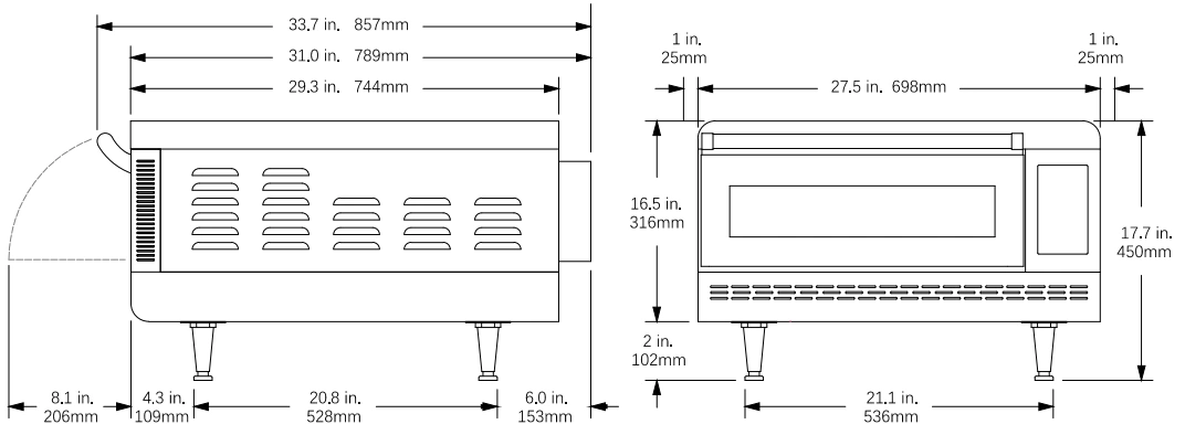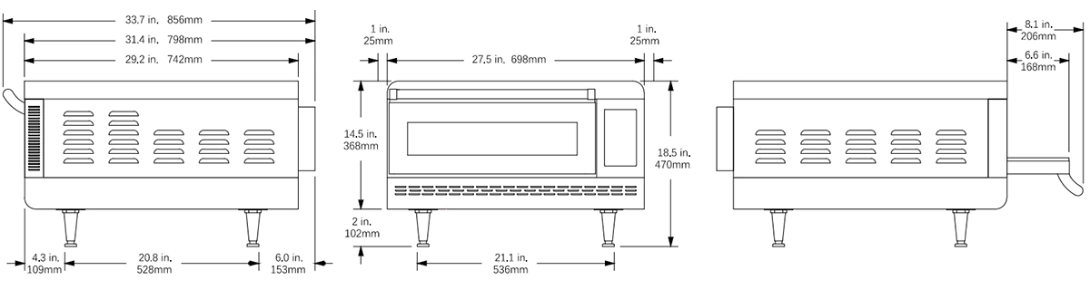 - Independently controlled upper and lower convection and impingement heating, combined with a turntable, smart menu system, and catalytic filtration.