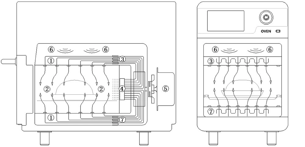 | Working principle | microwave + convection + impingement air + catalytic conversion + smart menu system + rapid preheating + rapid cooling | ||||